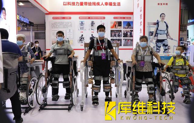 而在北京大艾機器人展區,一臺臺酷似科幻電影中“外骨骼戰甲”的機器人也讓人眼前一亮。展臺工作人員告訴貝殼財經記者,這些機器人適用于各種類型下肢功能障礙患者早期中期康復訓練,只要設定好程序,機器人會自動帶著患者以自然步態行走,“冬殘奧會火炬傳遞最后一日,楊淑亭女士傳遞火炬時穿戴的外骨骼機器人就是大艾的產品,而本次展出的大艾Ai外骨骼機器人艾行搭載了在傳感器優化分布及多傳感器信息融合技術的基礎上開發出的全新的Ai算法和傳感網絡技術,代表著下肢外骨骼機器人行業的一流水準。”