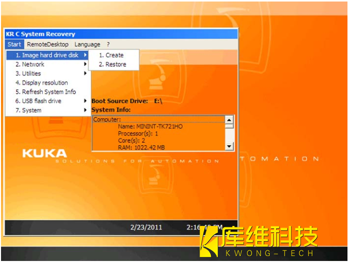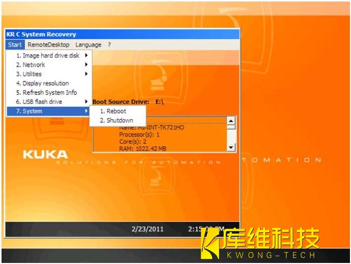 2. 插上具有起動功能的庫卡 U 盤,然后重啟控制系統。