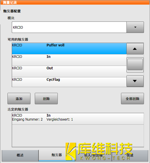 選項卡 【觸發器】在工業機器人KRC 4的作用