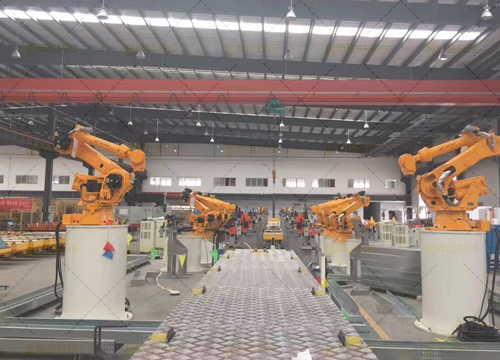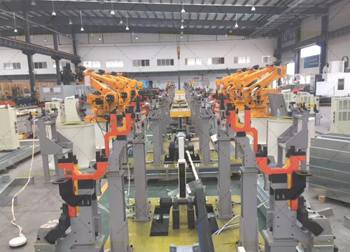 整線由彎板切割機(jī)器人工作站、中板坡口機(jī)器人工作站、座體機(jī)器人焊接工作站、中部槽機(jī)器人焊接工作站及中部槽總成機(jī)器人焊接線組成,包含整套機(jī)器人系統(tǒng)、機(jī)器人滑道、桁架梁、機(jī)器人焊接系統(tǒng)、兩軸變位機(jī)、彎板切割機(jī)、火焰割炬、激光跟蹤系統(tǒng)、焊接平臺(tái)、柔性組對(duì)工裝夾具、焊接電源、煙塵凈化系統(tǒng)等部分構(gòu)成