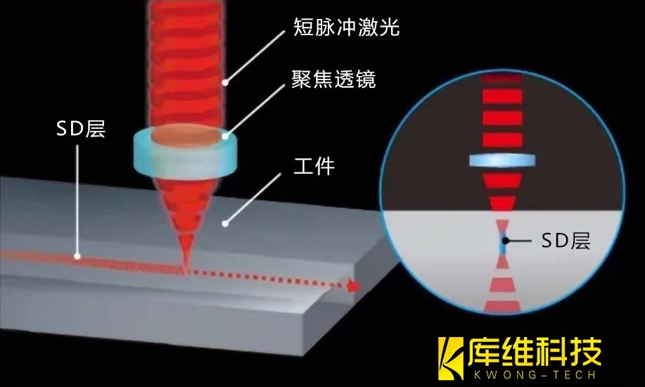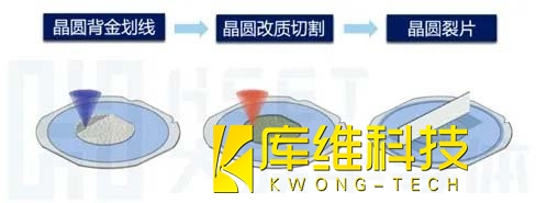 原理:通過精密激光束掃描形成改質層,使晶圓可通過外加應力沿激光路徑拓展。