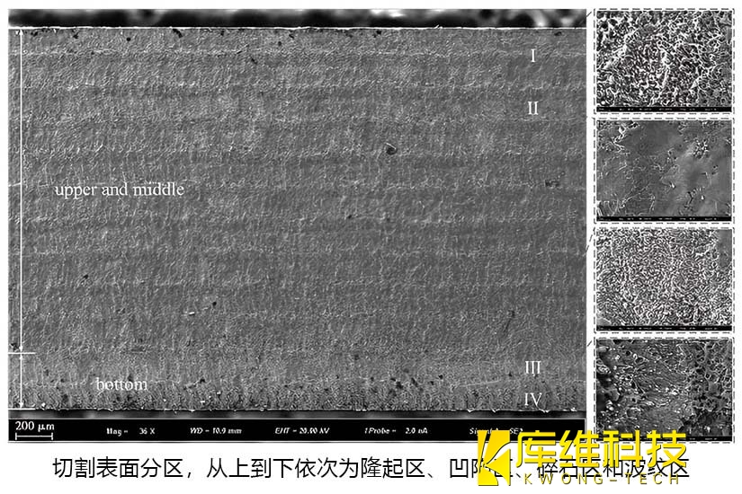 3、水導(dǎo)激光切割后 TC4 鈦合金表面形貌分析