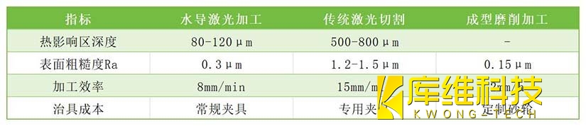 實驗顯示,水導(dǎo)激光在保證表面質(zhì)量的前提下,綜合加工成本較磨削工藝降低62%,產(chǎn)品交付周期縮短75%。特別在加工異形氣隙槽、微型定位孔等精密結(jié)構(gòu)時,展現(xiàn)出獨特的技術(shù)適應(yīng)性。